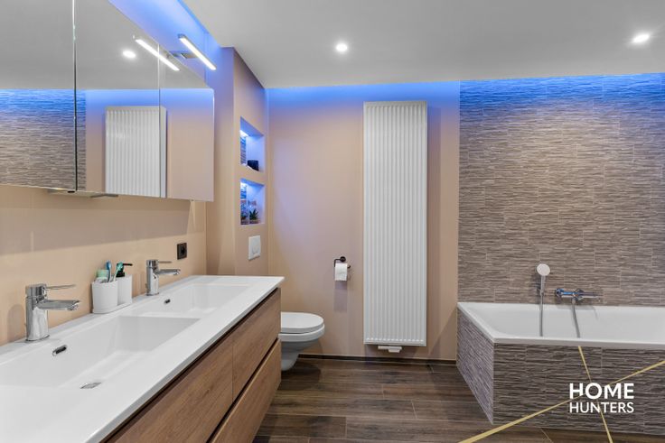 Deze woning werd op de gelijkvloerse verdieping ingericht in een inkomhal met inbouwkasten en gastentoilet, een gigantische leefruimte met open keuken (72 m²), een achterinkom, een prachtige badkamer (uitgerust met dubbel lavabomeubel, ligbad en inloopdouche) en een ruime garage.