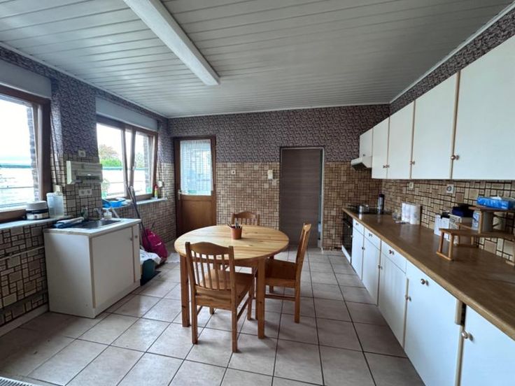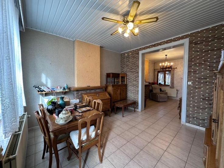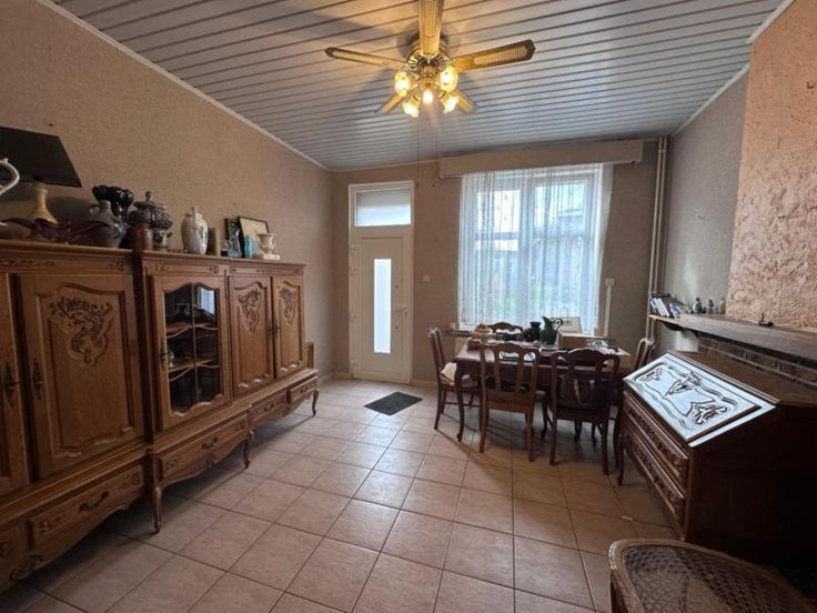 Située sur les hauteurs de Flémalle, dans un quartier calme, ce bien dispose d'un garage et d'un jardin. D'une superficie habitable de plus ou moins 100m², la maison se compose comme suit : Au rez-de-chaussée : Un salon/salle à manger d'une superficie totale de 28m², une cuisine (14m²) équipée d'un four, une cuisinière et un évier, une salle de douche (6m²) équipée d'une douche (récente) et d'un évier, un WC. Vous bénéficierez également d'un garage (25 m²) avec porte sectionnelle, une terrasse et un jardin avec plusieurs petits ateliers/abris. Au 1er étage : deux chambres (16 m² et 12m²). Au second étage : accès par une des chambres vers un grenier potentiellement aménageable. Sous-sol : cave (15m²). Aspects techniques : châssis PVC DV (réc s bois à l'arrière, volets à certains châssis, chauffage central au gaz de ville (chaudière VAILLANT). Electricité non conforme, toiture à vérifier. Visites sur RDV avec Md RIGA au 04/234.92.63 ou par mail (mathilde.riga.353186@belnot.be).