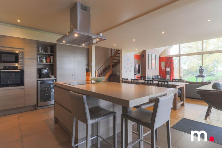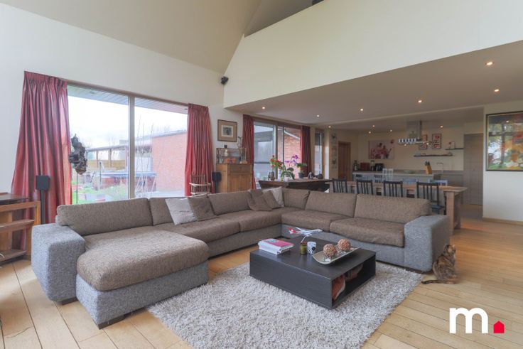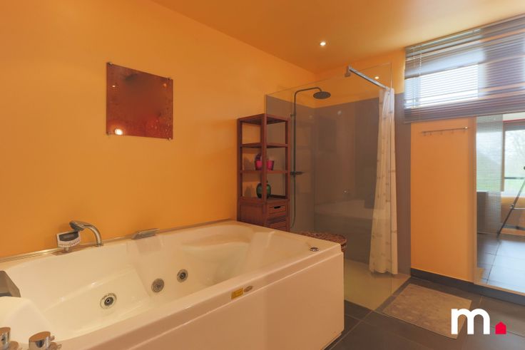 Vanuit de leefruimte en de mezzanine (bureau/hobbyruimte) is er overal een prachtig zicht op de grote tuin met boomgaard. Via de open keuken is er toegang tot de 6e slaapkamer met afzonderlijke dressing, eigen badkamer met dubbel wellness-bad, inloopdouche en lavabomeubel, het terras/tuin, wellness-ruimte met hammam en infraroodsauna en jacuzzi, buitenkamer en een zeer ruime garage (98m2).