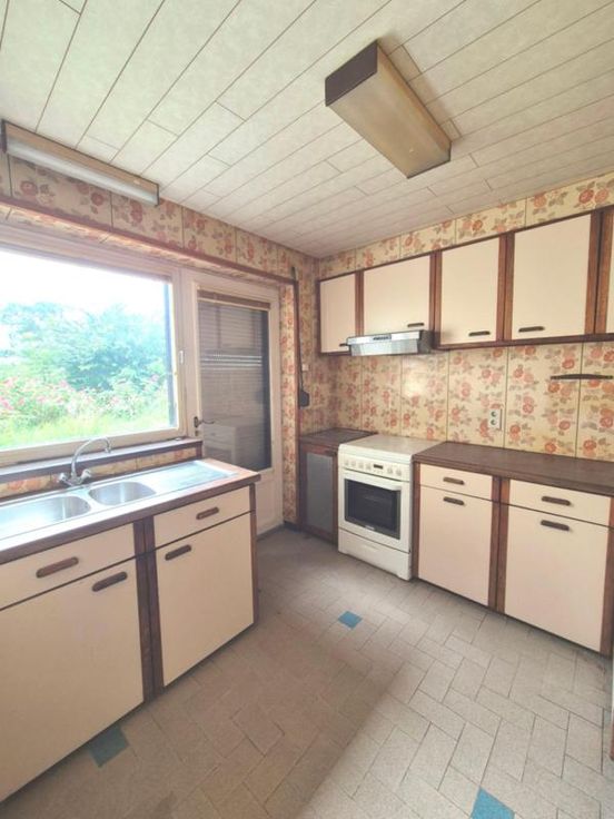 Une Maison d’habitation à rénover avec Terrasse et Jardin, Rue du Vieux Moulin, 25, à Marcinelle (Charleroi) -Descr. Som. : Ss-sol : cave-Rez : hall d’entrée, salon (17m²), sàm (14m²), cuisine (8m²), sdb (wc, lav, baig, bidet)-1er Etage : grand palier (20m²), chambre (18m²)-Grenier isolé-DV+ volets- Chauff cent Gaz de ville-Jardin avec terrasse- Remise- -PEB E (N°20241002018025) – A proximité du centre (proximité commerces, écoles, transports...)-RC : 464€- Sup : 04 A 00CA-Vis. : Sur RDV en l’étude
