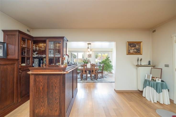 Gelegen tegenover het park van Brasschaat, kunt u volop genieten van de groene en rustieke omgeving. Dankzij de nabijheid van de Breda- en Miksebaan liggen belangrijke invalswegen bovendien binnen handbereik. Daarnaast zijn er in de buurt tal van horecagelegenheden, openbaar vervoer, supermarkten, winkels en recreatieve mogelijkheden. Bij het betreden van het appartement komt u via de private lift in de inkomhal, die is uitgerust met een gastentoilet. De ruime woonkamer profiteert van een overvloed aan natuurlijk licht en staat in vloeiende verbinding met de eetkamer. Tevens is er toegang tot een bureau of TV-kamer met aparte bibliotheek, momenteel ingericht als praktijkruimte. De eetkamer heeft toegang tot een royaal terras van 50 m² en is verbonden met de open keuken. Deze riante leefkeuken is volledig uitgerust met luxe apparatuur en beschikt over een bijkeuken met wasvoorzieningen. Via de vaste trap of de private lift komt u op de tweede verdieping in de nachthal. Deze ruime nachthal verbindt twee grote slaapkamers met de luxe badkamer en de dressing. De dressing is bovendien voorzien van een eigen douchekamer. Tot slot beschikt het appartement over een ruime kelder van 100 m², met verschillende (opberg)ruimtes en een garagebox. Neem gerust contact op voor meer informatie over deze eigendom via thomas.onzia@urbainvastgoed.be of bel 03 501 97 16. Bodemattest en stedenbouwkundige inlichtingen in aanvraag.