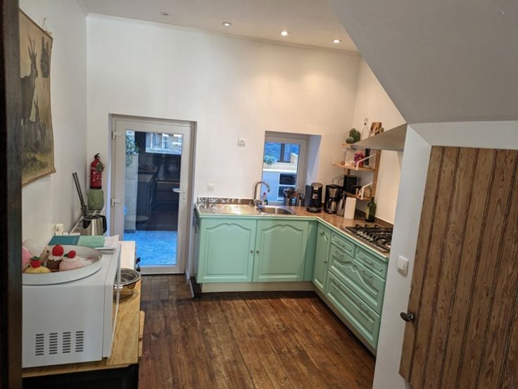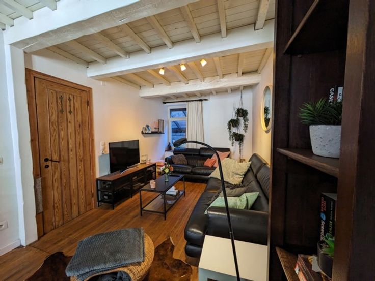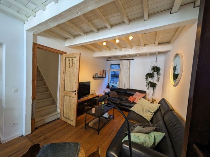 De woning werd in 2020 gerenoveerd : nieuw dak, isolatie, zonnepanelen, houtkachel,… het kleine tuintje heeft plaatsgemaakt voor een vergunde uitbouw.