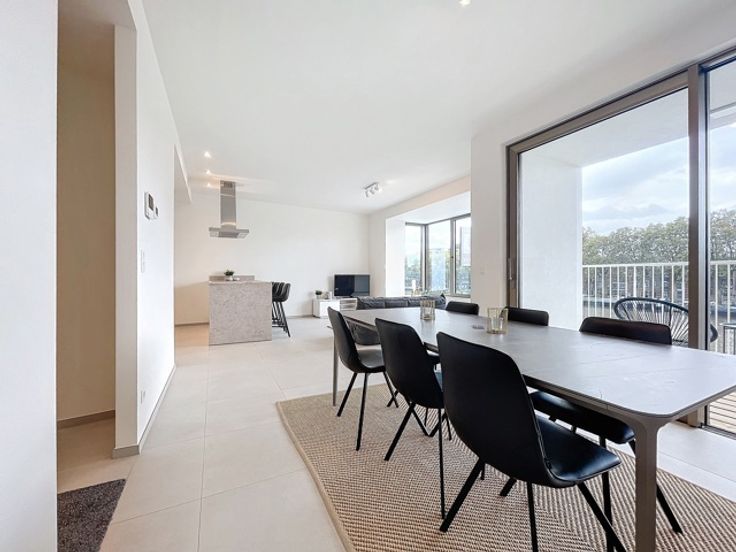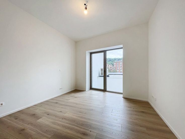 Dans un quartier en pleine reconversion, ne manquez pas cet appartement 2ch situé au 2e étage d'une nouvelle résidence à taille humaine (7 appartements-bureaux et commerces) ! Il présente une surface de 107m2 et se compose d'un hall d'entrée avec vestiaire et toilette, d'un très beau séjour de 41m2 avec cuisine ouverte (CUISINE EQUIPEE INCLUSE) et terrasse orientée sud et vue Meuse, d'une buanderie, d'une sdb ainsi que de 2 chambres. L'appartement est traversant et bénéficie d'une vue vers la Meuse pour les espaces de vie et vers les Coteaux de la Citadelle pour les espaces de nuit. Au sous-sol se trouve la cave privative. Chauffage sol, DV alu, VMC double flux. Possibilité emplacement de parking au rez-de-chaussée moyennant supplément (pré-équipé pour l'installation d'une borne électrique). A ne pas manquer ! PRIX CUISINE ET CAVE INCLUS ! Infos et rendez-vous: 0475.62.10.62