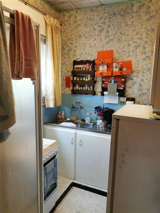 Op de gelijkvloerse verdieping: inkomhal, apart toilet, salon en eetkamer en een klein keukentje met douchecabine