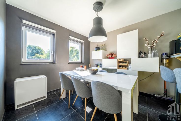 À la recherche d’un appartement moderne aux portes de Tournai, dans un cadre calme et agréable ? Idéalement situé dans une petite résidence érigée en 2012, L'Agence Leclercq vous propose ce bel appartement lumineux avec terrasse, un grand garage fermé et une cavette dans un sous-sol sécurisé. Le hall d'entrée dessert un séjour spacieux et lumineux, ouvert sur une cuisine entièrement équipée, idéale pour vos moments de convivialité. Le balcon attenant vous offre un espace de détente complémentaire dans un cadre paisible et sans circulation. De l'autre côté, la partie nuit se compose d'une vaste buanderie, d'une belle salle de douche, d'un WC séparé ainsi que deux belles chambres donnant sur le jardin de la résidence. Il ne vous reste plus qu'à poser vos meubles et profiter de cet appartement clé en main ! Les petits plus selon l'agence Leclercq: - Isolation thermique à la pointe. - Châssis double vitrage PVC. - Système de ventilation. - Cadre idyllique et paisible. PEB "B" - soit 138 kWh/m².an - consommation théorique totale d'énergie primaire 12.427 kWh/an - N°20240712010937. Bien libre d'occupation au 30 novembre 2025. En contrepartie, une indemnité mensuelle de 750 € sera versée à l'acquéreur entre la signature de l'acte de la remise des clés. Bien référencé 6056042. Publicité à caractère non contractuel et ne constituant pas une offre. Les propriétaires se réservent le droit de décision, d'acceptation ou non sur toute(s) offre(s) soumise(s) pour leur bien.