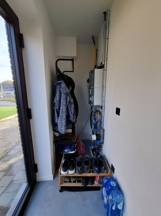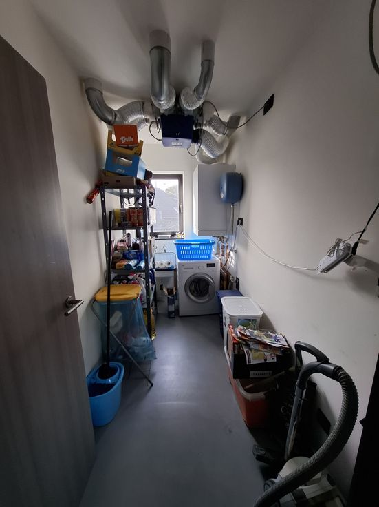 Naast de leefruimte bevindt zich de bergruimte/wasplaats met het ventilatiesysteem en de omvormer van de zonnepanelen (volledig gescheiden van het andere appartement).