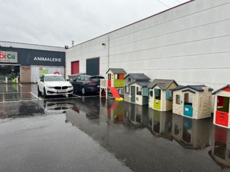 Aantrekkelijke winkelruimte te huur gelegen in het dynamische en levendige Retail Park van Jemeppe-sur-Sambre, aan een drukke weg tussen Charleroi en Namen.