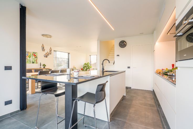 Deze nieuw te bouwen woning wordt volledig afgewerkt met kwalitatieve materialen zoals o.a. maatkeuken inclusief toestellen met een natuurstenen werkblad, vloerverwarming op het gelijkvloers en de eerste verdieping aangestuurd door middel van een warmtepomp (water/lucht), laminaat in de slaapkamers, zonnepanelen, oprit, terrassen, eiken trap, regenwaterpomp in de put … De keuzes voor de afwerking zijn volledig naar sm...