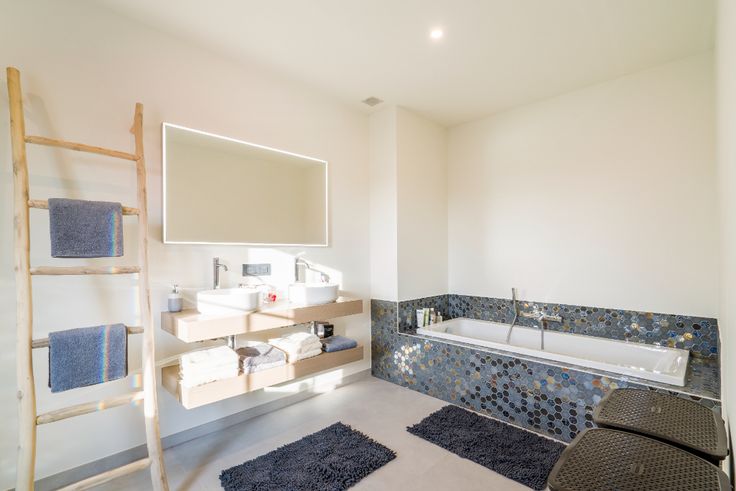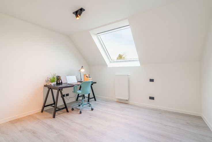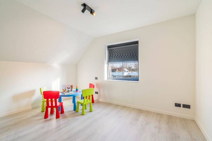 Op de eerste verdieping worden er 3 slaapkamers voorzien. De grootste slaapkamer biedt ruimte voor een grote dressing met toegang tot de badkamer. De badkamer wordt voorzien van een ligbad, douche en een dubbel lavabomeubel, daarnaast vinden we op de bovenverdieping een afzonderlijk toilet. De woning biedt de mogelijkheid om nog een vaste trap naar de grote zolder te voorzien.