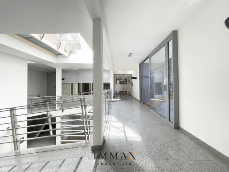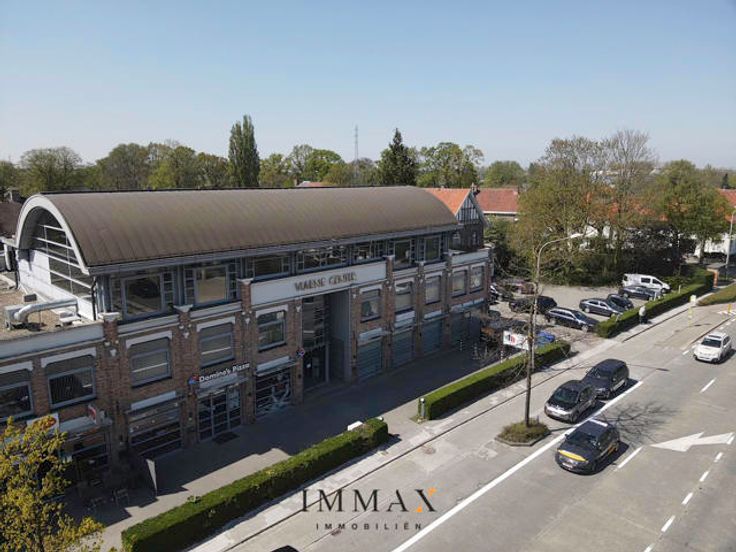 Dit ruime kantoorgebouw, gevestigd in een voormalige kartonfabriek, combineert historische charme met moderne functionaliteit. Op het gelijkvloers bevinden zich drie winkelpanden, waarvan er momenteel twee zijn verhuurd. De kantoorruimte is toegankelijk via een aparte inkomhal, uitgerust met zowel een lift als een trap.