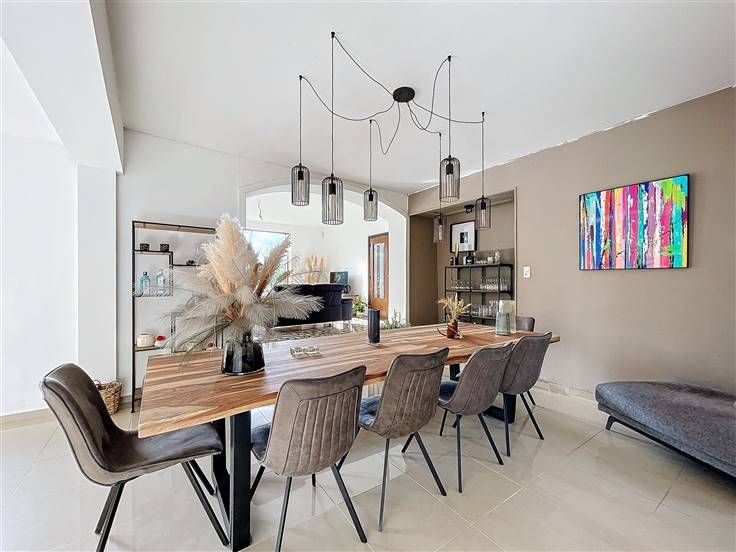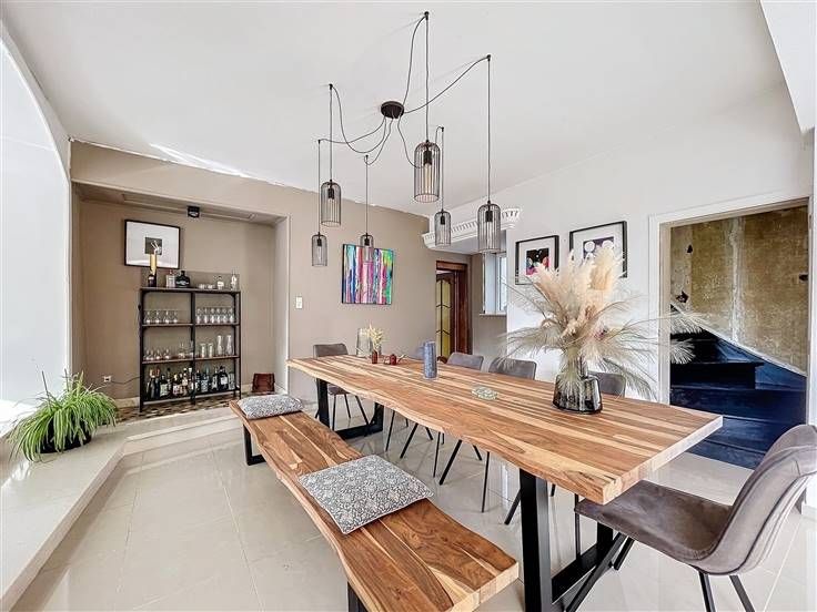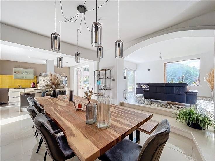Rez: hall d'entrée, salon, salle à manger, cuisine équipée, bureau avec possibilité d'entrée séparée, wc, buanderie.