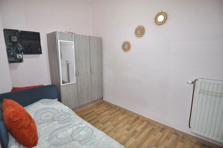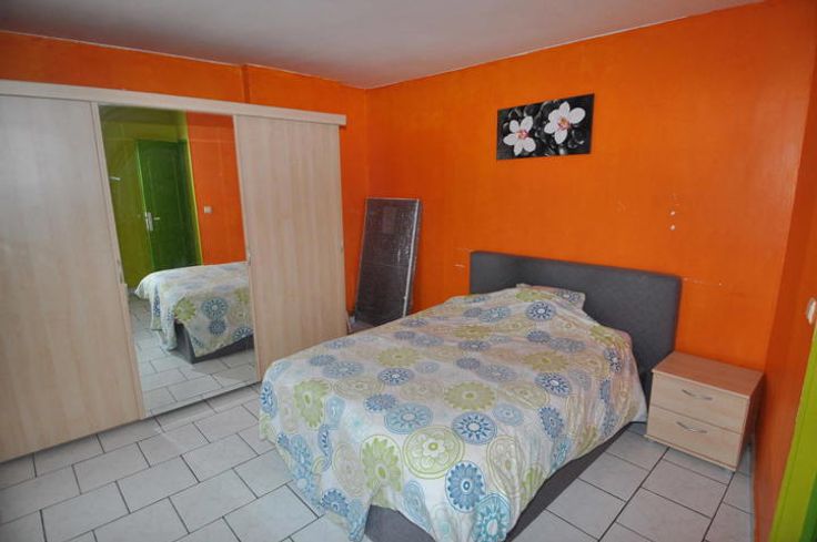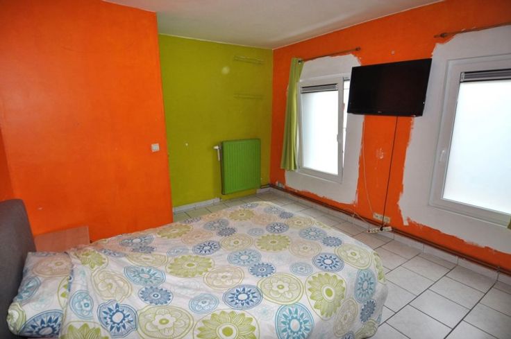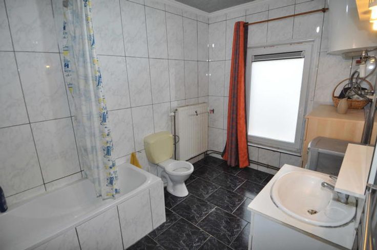 L'étage quant à lui offre deux chambres dont une grande de +/- 16m2 et une plus petite de +/- 14m2 ainsi qu'une salle de bain avec baignoire /douche.