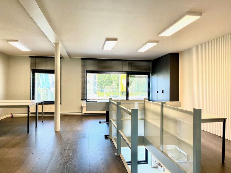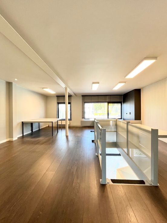 1ste verdieping: deze verdieping heeft een royale extra ruimte van ca 90m2 die momenteel dienstdoet als bureauruimte en verbonden is via een interne trap met het gelijkvloers, compleet met meerdere kamers en een kitchenette. Volgens de vergunning is deze verdieping bekend als een appartement, wat een opsplitsing steeds mogelijk maakt.