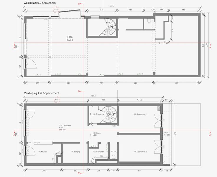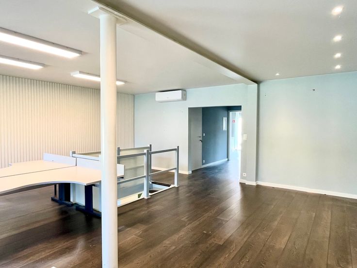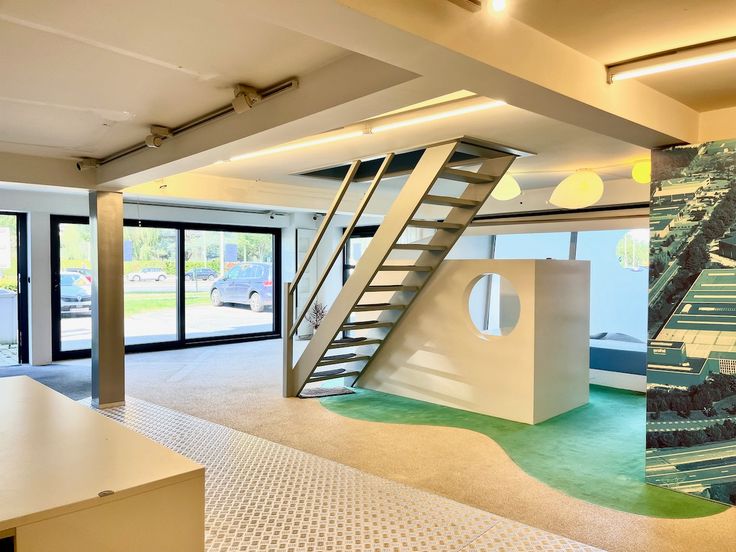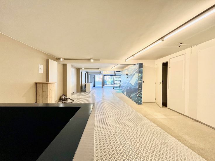 Gelijkvloers: Een ruime handelsruimte of showroom, perfect voor elke commerciële activiteit. De open indeling van 136m2 laat zich flexibel invullen.