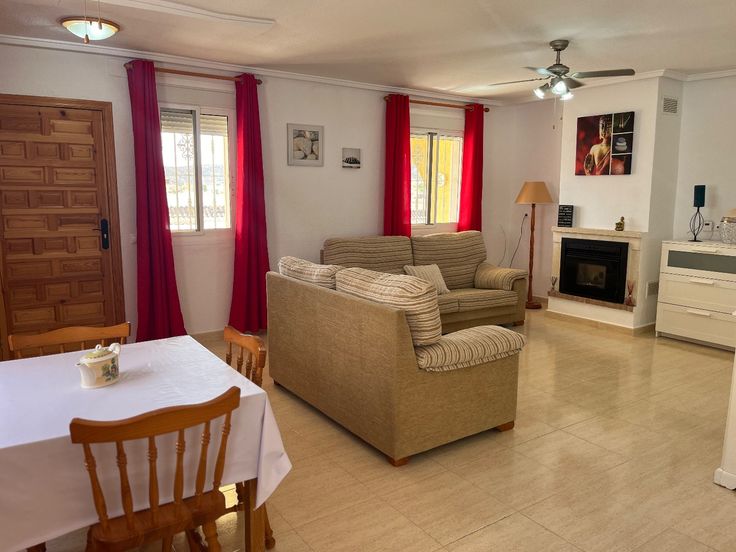 Woon-eetkamer: het is een ruime en gezellige ruimte, achter een van de banken staat een houten eettafel met 4 stoelen. Een pellethaard wordt de hoofdrolspeler tijdens de winters. Dit verwarmingssysteem zorgt niet alleen voor een aangename warmte, maar voegt ook een rustiek en charmant tintje toe aan de sfeer.