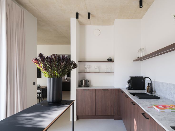 Dit pand maakt deel uit van een kleinschalig en luxueus architecturaal project, waarbij “less is more” centraal staat. Het ontwerp kenmerkt zich door doordachte ruimtelijkheden, strakke lijnen en minimalistische uitstraling met uitgepuurde materialiteit. Een bijzondere extra aan deze woning is het behoud van enkele prachtige, originele elementen die een naadloos geheel vormen.