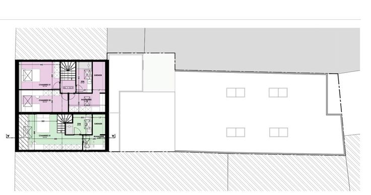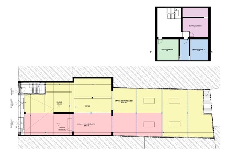 À l’étage, une surface de +/- 240 m² est entièrement aménageable, avec des plans déjà établis pour la création de trois appartements. Ces futurs logements sont pensés pour optimisés le confort des occupants. Chaque appartement pourra bénéficier d’une conception moderne et fonctionnelle.