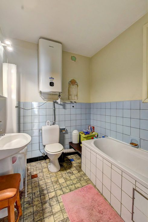 Betreft twee 2-slaapkamerappartementen (88m²) en één ruime 1-slaapkamerappartement (82m²). Elk appartement heeft twee privatieve kelders. De elektrische keuringen zijn in orde en het gebouw asbestvrij. Dak en ramen zijn gerenoveerd, waardoor alle EPC's B of C zijn. Geen lift, noch syndicus, wat de gemeenschappelijke kosten erg laag houdt. Mooie inkom en trappenhal. Sommige keukens en badkamers kunnen een opfrissing gebruiken.