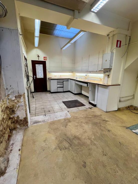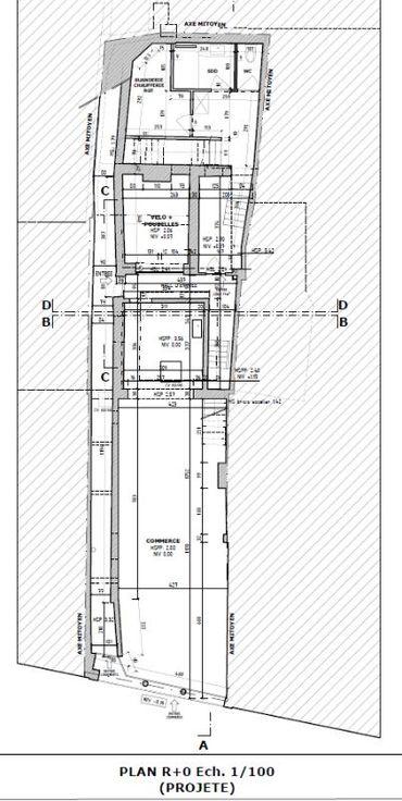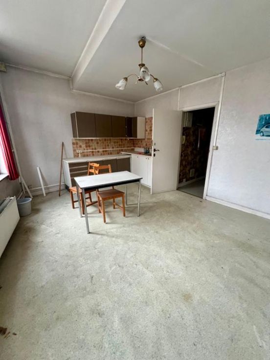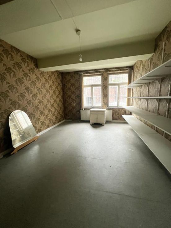 Une maison de commerce à rénover avec la possibilité de faire 3 appartements d'une chambre. Actuellement, au rez-de-chaussée, il y a un commerce de 56 m² avec un petit espace de stockage et un WC. Au 1er étage, il y a un salon, cuisine/salle à manger et salle de bain. Au 2ème étage, 3 chambres. Il y a également une annexe à l'arrière du bâtiment.