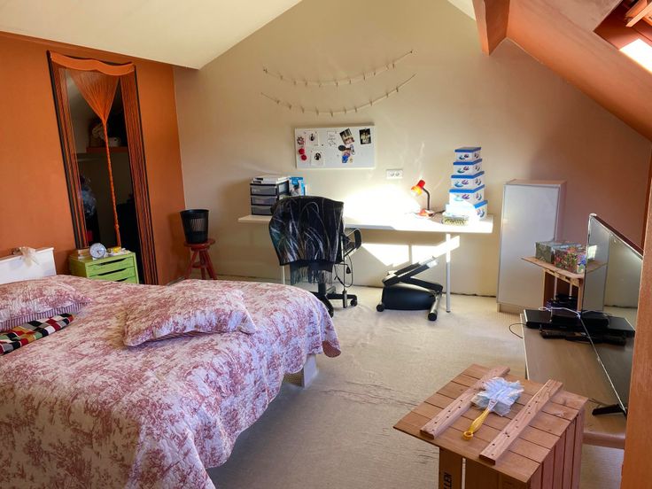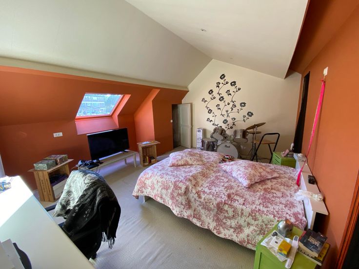 Le second étage a été aménagé en chambre (21 m²) avec penderie et espace grenier.