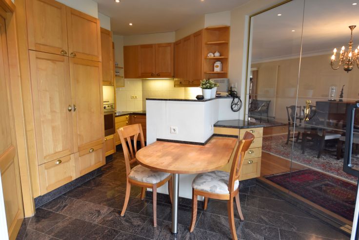 Daarnaast vind je de landelijke keuken met een prachtig granieten werkblad.