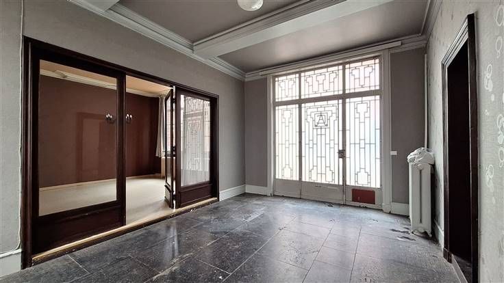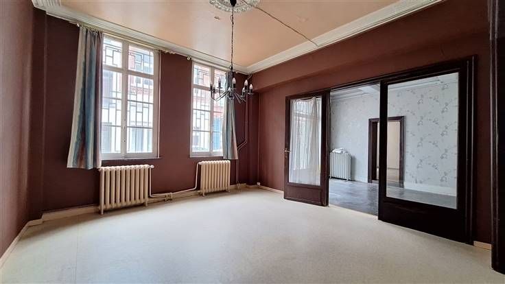 Sorry er is geen nederlandse vertaling beschikbaar. ATH - Au cœur du centre-ville, à deux pas de toutes les commodités, grande maison de maître de cinq chambres avec bureau, grenier aménageable et agréable courette - Faire offre àpd 295.000€ - PEB F (504 kWh/m².an) - 20180417004970 Sous-sol : Quatre caves dont une servant de chaufferie Rez-de-chaussée (+- 119,5m²) : Grand et lumineux hall d'entrée (+- 21m²) desservant un séjour (+- 43m²), un bureau (+- 18m²) et un petit hall (+- 6m²) donnant lui-même accès à ce même bureau, à une cuisine (+- 13m²), aux caves et aux étages. Premier étage (+- 106m²) : Hall de nuit (+- 13m²) desservant cinq chambres (+- 16m² - 17m² - 17,5m² - 18m² - 19m²), une salle d'eau (+- 5,5m²) et donnant accès au second étage Deuxième étage (+- 92,5m²) : Hall de nuit (+- 7m²) desservant cinq pièces mansardées, aménageables, dont trois en enfilade (+- 13m² - 13,5m² - 16,5m² - 17,5m² - 25m²) Extérieurs : Une cour avec toilette (+- 18,5m²) accessible depuis le hall d'entrée et la cuisine Caractéristiques : Maison pleine d'authenticité et de caractère entièrement à réhabiliter/à moderniser Soleil : Sud-Est dans la cour Surfaces habitable : +- 318m² (hors caves) -> Toutes les informations sur notre site www.athimmo.be