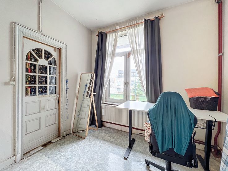 Il se compose de: une spacieuse chambre de +-18,5m2, un salon, un espace cuisine à aménager, une salle de bain ainsi qu'une terrasse avec un débarras.