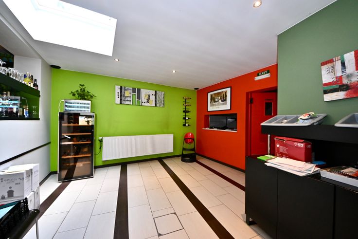 Commercieel interessant gelegen handelspand op toplocatie (Klein-Willebroek). Gelijkvloers restaurant met pizza-oven, keuken en garage/opslagruimte. Eerste verdieping: appartement met 2 kamers, badkamer en woonruimte met open keuken.