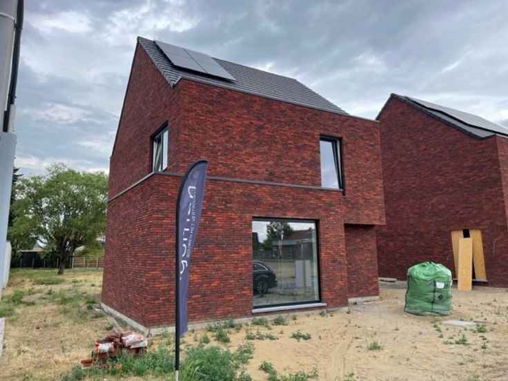 In de Oliebergstraat te Olsene, vlakbij Zulte, bouwen wij een open bebouwingen verbonden d.m.v. een carport met de aanpalende woning. Deze energiezuinige woning wordt gebouwd op een perceel van 605m2 en heeft een grote diepe tuin. De woning heeft een optimale indeling met op het gelijkvloers een inkomhal met gastentoilet, een grote lichtrijke leefruimte met open keuken en een praktische was/bergplaats. Op de eerste verdieping bevinden zich 3 ruime slaapkamers en een badkamer met bad+douche. De praktische zolder is toegankelijk met een uitschuifbare zoldertrap. De woning is ondertussen in volle afwerking. Onze interieurarchitect koos hier voor tijdloze en kwalitatieve afwerkingsmaterialen. Niet alleen over de interieurafwerking, ook over de technische details werd goed nagedacht! De woning is sowieso uitgerust met super energiezuinige technieken zoals een warmtepomp, zonnepanelen, vloerverwarming op beide verdiepingen, ventilatie met warmterecuperatie, super isolerende beglazing,... Deze woning kan verkocht worden onder de tijdelijke regeling van 6% indien u aan de voorwaarden voldoet. De woning kan snel instapklaar opgeleverd worden aangezien deze reeds gepleisterd en gechapet staat. Meer info of een bezoek plannen? Contacteer onze bouwadviseur Ewout op 0497 588 888 en ontvang het volledige dossier.