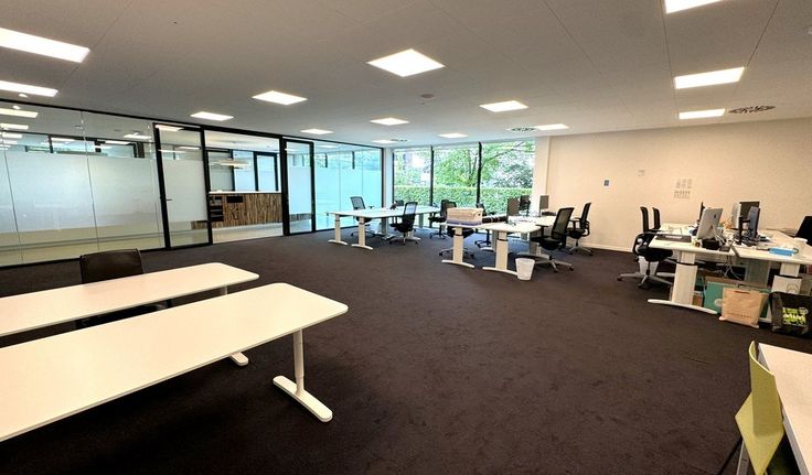 Specifiek: volledig ingedeeld met systeemwanden (grotendeels beglaasd), dubbel isolerende beglazing, vals plafond, ingebouwde led-armaturen, alle soorten bekabeling met grote datakast in serverlokaal, sanitair voor H/D, keuken, cv klimatisatie, koelplafond, badgesysteem, lift, aangename patio (gemeenschappelijk),