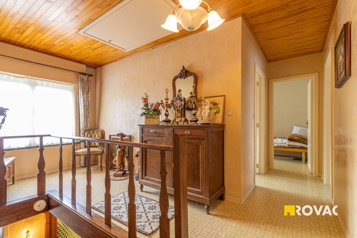 Op de eerste verdieping zijn er 6 kamers waarvan 3 grote en 3 kleinere die dienst kunnen doen als bureel, naairuimte, hobbyruimte, ... . Verder heb je nog een ruime zolder.