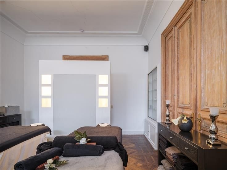 Exclusief herenhuis met handelspand op toplocatie te Aalst Dit prestigieus herenhuis gelegen op het Keizersplein is een vroeg 19de eeuws classicistische burgerwoning waar vroeger de brouwerij "Lelie" was gevestigd. Vandaag wordt er een exclusief schoonheidsinstituut op de gelijkvloers uitgebaat met privé wellness in de prachtige binnentuin. Bij de verbouwing in 2004 zijn de authentieke stijl elementen die beschermd zijn (gevel, trap, glasramen) behouden. U komt binnen in een majestueuze hall die u via de prachtige wenteltrap brengt in het woongedeelte op de 1ste verdieping: woonkamer prachtig zicht op het Keizersplein, een keuken, drie slaapkamers met elk hun badkamer of douche. Op de 2de verdieping heeft u nog twee slaapkamers, waarvan één met douche. Het handelsgedeelte heeft verscheidene massageruimten en cabines voor schoonheidsbehandelingen. In de mooi aangelegde tuin geniet men van een wellness met douche en sauna. Er is een ruime kelder met wijnkelder en bergingen. Een niet te missen opportuniteit voor verschillende doeleinden: B&B, Kantoor, showroom, beauty, events., kunstgalerij, prestige woning(en), kangoeroewoning of co-housing. Een pareltje in het hart van de stad. Het betreft een verkoop via aandelenoverdracht zonder toepassing van registratierechten. Omdat het een beschermd monument is, geldt geen renovatieplicht in functie van de EPC klasse. Voor meer info of een bezoek: contacteer Ann 0477 41 46 16