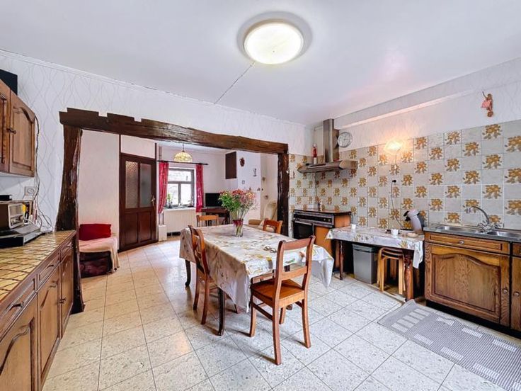 Nous proposons à la vente, à la campagne, une maison d'habitation sise à Ouffet, rue du Perron n°28. Composition: rez: hall, cuisine, salon, buanderie, salle de bain (WC, évier, baignoire); 1er étage: hall, 4 chambres, wc; 2ème étage: grenier; cave; jardin. Châssis bois simple vitrage. Chauffage central au mazout. Fosse septique. Lien visite virtuelle: https://my.matterport.com/show/?m=8aCxu2HJXqu Publicité non contractuelle.