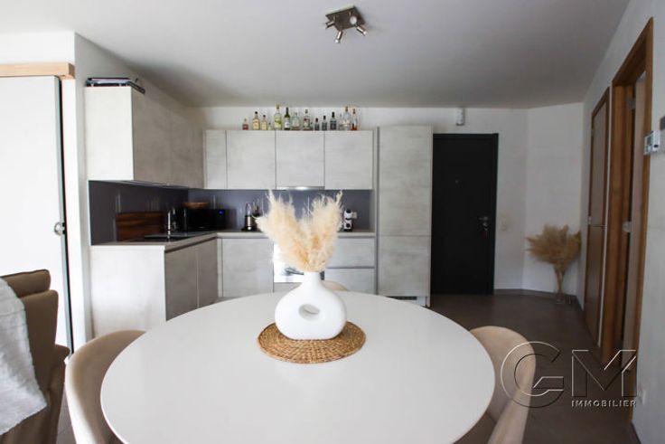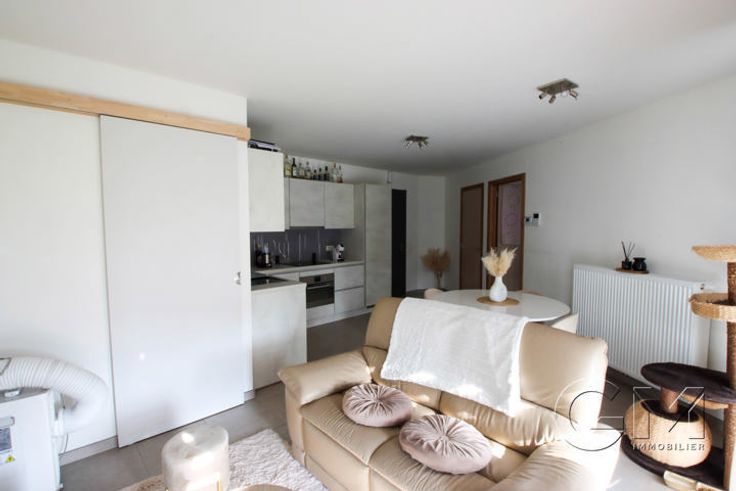 Place de parking privée - Séjour lumineux accueillant la cuisine équipée (four, taque, hotte, lave-vaisselle et réfrigérateur/congélateur) - Buanderie - WC séparé - une chambre avec petite terrasse - Salle de bain composée d'une douche à l'italienne et d'un meuble vasque.
