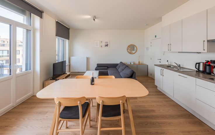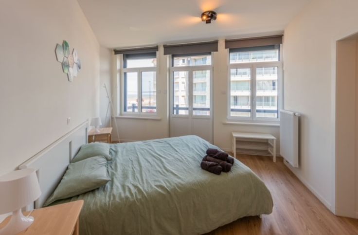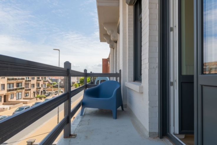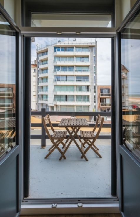 Te huur aan de kust van Raversijde, Oostende: gerenoveerd 1-slaapkamerappartement met zeezicht. Berging met plek voor wasmachine. Keuken met frigo, vaatwasser, combi microgolf/oven. Elektrische rolluiken. Tramhalte vlakbij.