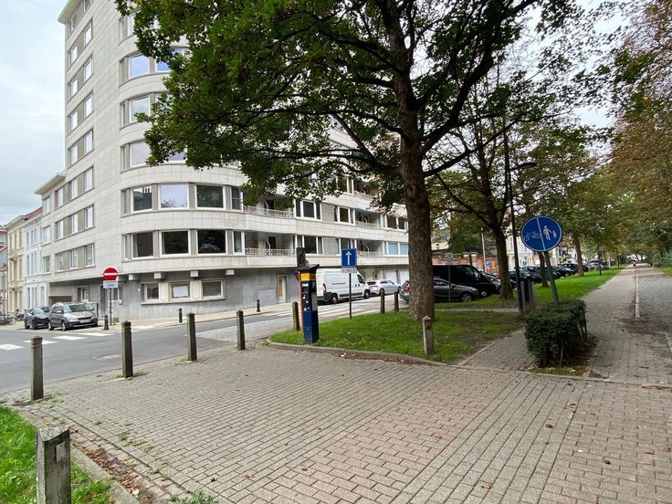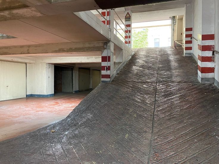 Automatische inrijpoort naar gesloten garagebox op -2 verdieping nabij het Sint-Pietersstation, op de hoek van de Koning Leopold II laan en de Lamoraal van Egmontstraat.