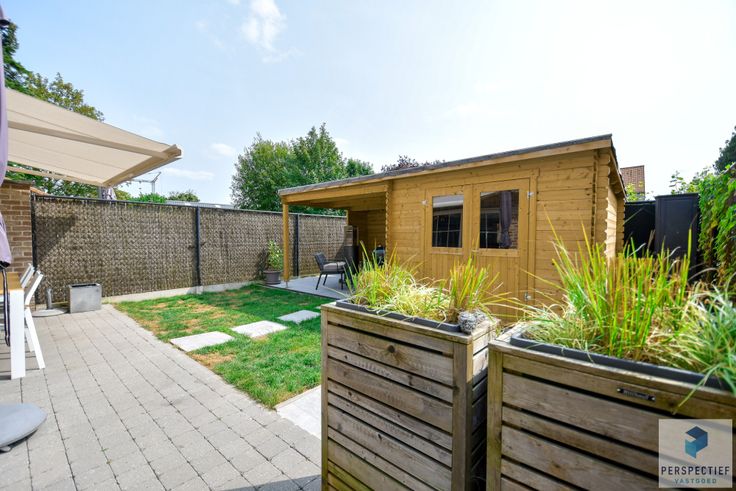 Buiten is er een zongerichte tuin met een groot terras en achteraan de tuin is er een tuinberging met overdekt terras.