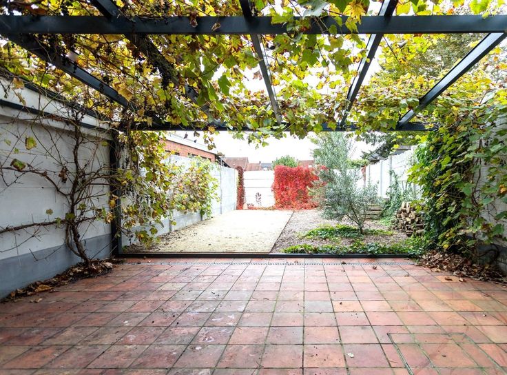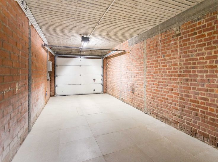 GELIJKVLOERS bestaande uit een gemeenschappelijke inkomhal met brede trap - wasplaats/fietsenstalling - diepe garage met airco (om te voeren tot 1 of 2 werkruimtes) - koer/parking - gezellig stadstuintje.