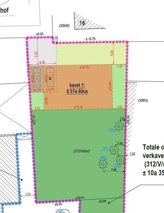 Kosten voor meting en plan, deelname in opmaak verkavelingsakte ten laste van koper.