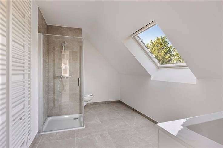 Kwalitatieve nieuwbouw-woning (2024) met een bewoonbare oppervlakte van +/- 190 m² met vier slaapkamer en twee badkamers, gelegen op een West-georiënteerd perceel van 570 m² te Jezus-Eik. LAATSTE MOGELIJKHEID voor Aankoop aan 6% verlaagd BTW-tarief mogelijk onder voorwaarden (= 772.180 euro ALL-in : incl. 12% registratierechten op de grond en 6% BTW op constructie). De energievriendelijke woning heeft een E-peil = 27 en werd voorzien van een warmtepomp en 12 zonnepanelen (circa 4.200 Wp). Niet overstromingsgevoelig. Zeer goede ligging te Jezus-Eik (Overijse) met vlotte bereikbaarheid, in de nabijheid van winkels, scholen en openbaar vervoer. Voor meer info, grondplannen of lastenboek : contacteer ons! .