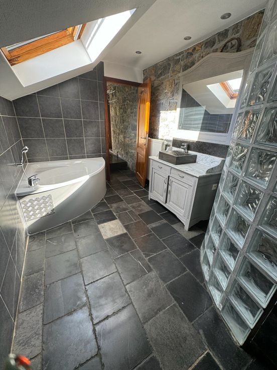 Salle de bain avec baignoire et douche italienne.