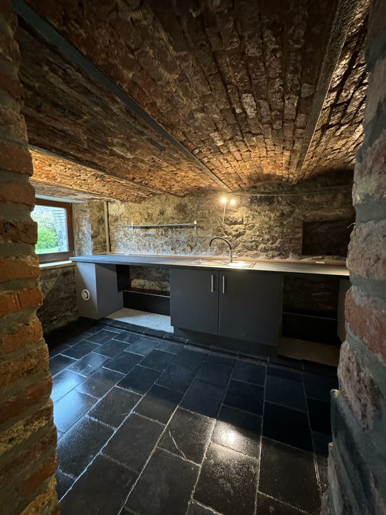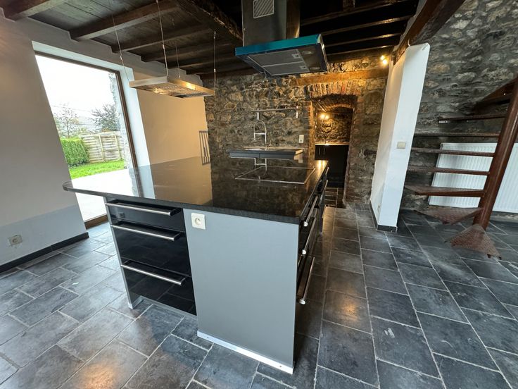Belle maison de caractère entièrement rénovée. PEB B. Cuisine ilot central équipée, + arrière cuisine avec emplacements pour machines à laver et sèche linge.