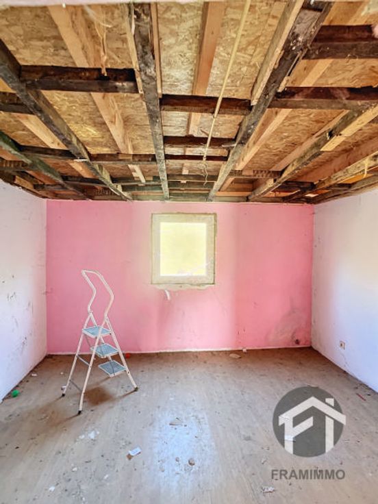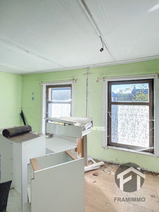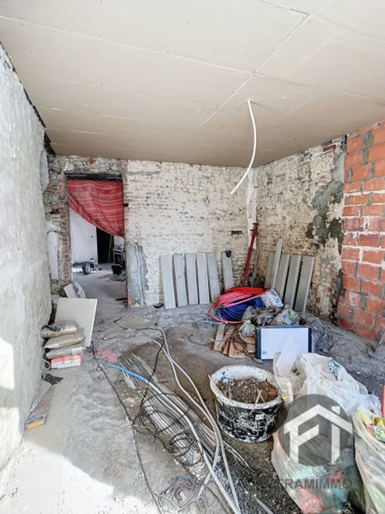 Maison à rénover complètement avec jardin à l'avant comprenant un séjour, cuisine non équipée, emplacement salle de bain, buanderie, hall de nuit, 2 chambres. Parking à l'avant de la voiture. Offre àpd 60.000€