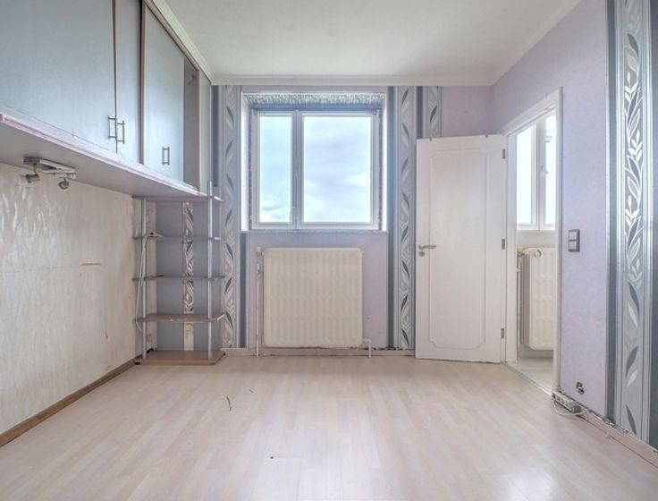 Belle opportunité ! Spacieux appartement de près de 80m2 à rénover ! Celui-ci est situé au 8eme étage d'une copropriété et profitant d'une vue dégagée ainsi que d'une belle luminosité. Son agencement simple permet de profiter au maximum de ses volumes généreux et d'accueillir vos projets de rénovations. L'appartement est composé comme suit : Hall d'entrée donnant accès un un séjour de +/-26m2 possédant une terrasse de +/-7m2 orientée Ouest, cuisine de +/-11m2, seconde terrasse fermée afin de créer un bel espace de rangement supplémentaire, chambre de +/-13m2 avec salle de bain attenante. Cave située au niveau -1. Buitenkans! Ruime flat van bijna 80m2 die gerenoveerd moet worden! Gelegen op de 8e verdieping van een gebouw in mede-eigendom, profiteert het van een vrij uitzicht en veel natuurlijk licht. Dankzij de eenvoudige indeling kun je de grote volumes optimaal benutten en er je renovatieprojecten in onderbrengen. Het appartement bestaat uit Entree, hal die toegang geeft tot een woonkamer van +/-26m2 met een terras van +/-7m2 op het westen, keuken van +/-11m2, tweede afgesloten terras om extra opslagruimte te creëren, slaapkamer van +/-13m2 met en-suite badkamer. Kelder op niveau -1. De flat heeft ook een optionele ruime garage (€35.000). Deze wordt afgesloten met een elektrische deur, biedt plaats aan maximaal twee auto's en is ideaal gelegen naast de liftschacht. Mede-eigendom: - Werkkapitaal: 105€/maand (gemeenschappelijke kosten, lift, conciërge, beheer) - Reser