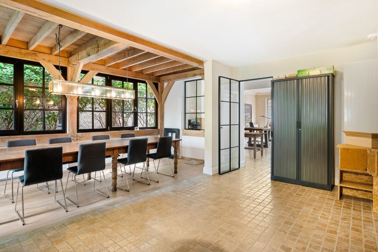 Bij binnenkomst stapt u in een ruime handelsruimte of kantoorruimte, perfect voor het ontvangen van klanten of het inrichten van een productieve werkplek. De ruimte straalt charme en professionaliteit uit, ideaal voor een representatieve uitstraling.