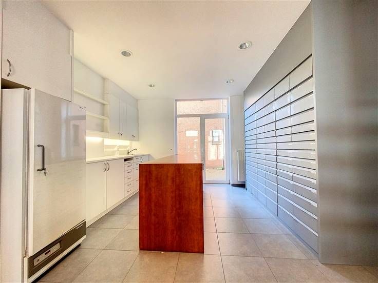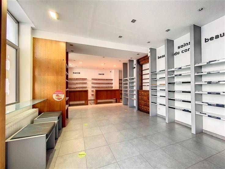 Sorry er is geen nederlandse vertaling beschikbaar. Magnifique rez-de chaussée commercial au centre ville proposant de beaux espaces dont une surface commerciale à l'avant (anciennement pharmacie), 3 bureaux, une salle d'archive ou de stockage, un espace repos avec terrasse et des sanitaires. L'espace commercial de près de 60 m² est accessible via une porte à ouverture automatique. Il est également équipé d'un volet électrique. Le hall dessert 3 bureaux de 14, 10 et 6 m². Pièce à archives ou réserve de 14 m². L'espace détente comprend un spacieux séjour de 33 m² et une cuisine toute équipée ouverte, une toilette séparée ainsi qu'une salle de douche. Grande cave avec chaufferie (nouvelle chaudière.) Le bien propose des finitions très qualitatives, des étagères sur-mesure, un système d'éclairage professionnel, des extincteurs de fumée et un système d'alarme. Jolie terrasse extérieure de 14m². Bail commercial de 9 ans. Possibilité de louer un parking en option. Loyer 1250€. Visites et infos au 02/355.50.55.