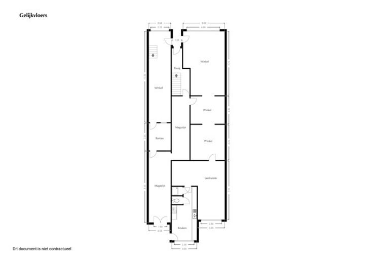 Op het gelijkvloers word je verwelkomd door een ruime winkel van ongeveer 61 vierkante meter, ideaal voor het realiseren van jouw droomwinkel. Maar dat is nog niet alles! Er is ook een bureau van zo'n 33 vierkante meter, waar je in alle rust kunt werken of tot rust kunt komen. De keuken van 16 vierkante meter is perfect om je culinaire creaties tot leven te brengen, en het aparte toilet en de douchekamer voegen extra gemak toe aan het dagelijkse leven.