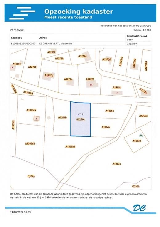 Te koop Bouwkavel van 1.373 m² in rustig straatje in Vieuxville.