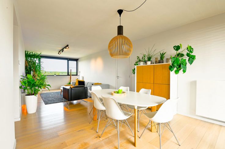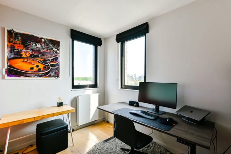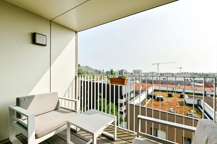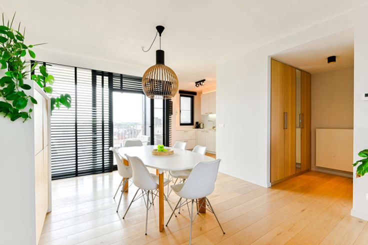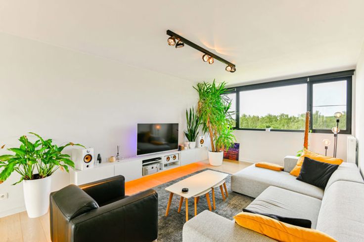 Ontdek dit schitterend appartement op de vijfde en bovenste verdieping van een stijlvolle residentie in Antwerpen. Dit hoekappartement verwelkomt je met een adembenemend uitzicht op de groene Middenvijver aan de voorkant en de prachtige ‘Regatta’ wijk aan de achterkant. Dankzij de grote raampartijen heb je overvloedig daglicht, evenals een prachtig uitzicht op de omliggende natuur. De stijlvolle afwerking wordt gekenmerkt door een eiken parketvloer die door het hele appartement loopt, met uitzondering van de badkamer. De leefruimte is ingedeeld in een gezellige zithoek, een eetkamer en de open keuken. Deze is uitgerust met alle benodigde apparaten en biedt voldoende kastruimte. Op het aangrenzende terras kan je genieten van een heerlijk tasje koffie bij het ontbijt of een welverdiend aperitiefje na een drukke werkdag. Het slaapgedeelte heeft twee ruime slaapkamers met veel lichtinval en een moderne badkamer uitgerust met inloopdouche en dubbele wastafel. Er is ook een gastentoilet en een berging/waskamer aanwezig. Tot slot biedt dit appartement extra gemakken zoals een ondergrondse garage, kelder en fietsenstalling. Niet alleen zijn er moderne en kwalitatieve materialen gebruikt, ook het zeer lage energieverbruik maakt comfortabel en duurzaam wonen mogelijk. Meteen een afspraak? Bel rechtstreeks met de eigenaar op het nummer 0473 61 32 69. Meer info? Surf naar de uitgebreide website https://blancefloerlaan325.hellohome.be