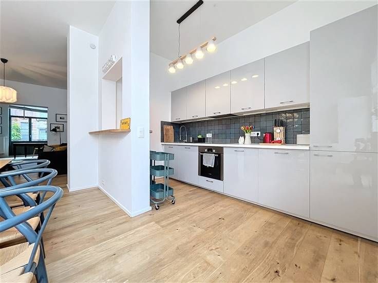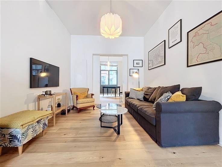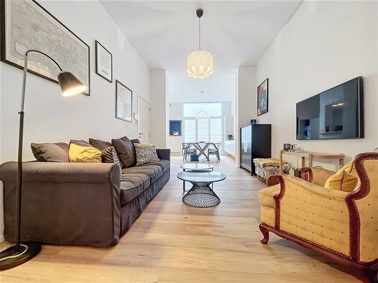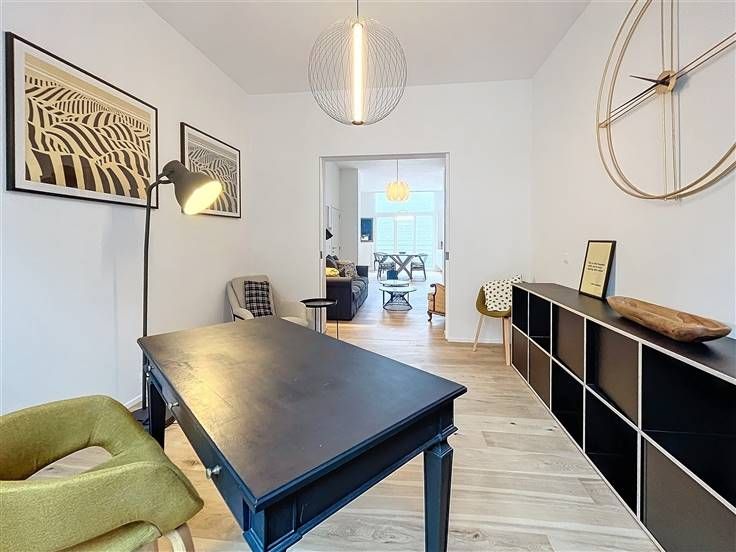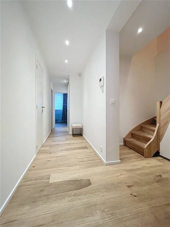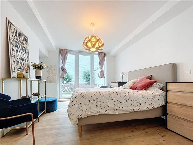 Quartier Dailly - Luxueus volledig gemeubeld 2-slaapkamer appartement van +/- 130m² met een terras van +/- 20m². Op de 1ste verdieping / 3 verdiepingen: Uitgebreide inkomhal van +/- 6m² met een gastentoilet, woon/eetkamer van +/- 50m² met massief eiken parketvloer, een volledig ingerichte open keuken van +/- 10m² (keramische kookplaat, oven, koelkast/vriezer, afzuigkap, vaatwasser, broodrooster, koffiezetapparaat), een bijkeuken met ruimte voor een droogkast en wasmachine. Op de begane grond, een nachthal van +/- 8m² met bergruimte, een wasruimte, een toilet, een slaapkamer van +/-10m² met aangrenzende doucheruimte, een ouderlijke slaapkamer van +/-15m² met een privé badkamer van +/- 8m², een ruime dressing van +/- 8m², een terras van +/- 20m². Faciliteiten en comfort: Volledig gerenoveerd in 2024, duurzame materialen van topkwaliteit, LED sfeerverlichting, volledig gemeubileerd (keukengerei, beddengoed, volledig servies, stofzuiger, enz.), gepantserde deur, dubbele beglazing, toegangstelefoon. PEB C. Kosten: 65€/maand (opstalverzekering, elektriciteit voor gemeenschappelijke ruimtes). Individuele meters voor water, gas en elektriciteit. Beschikbaar per direct